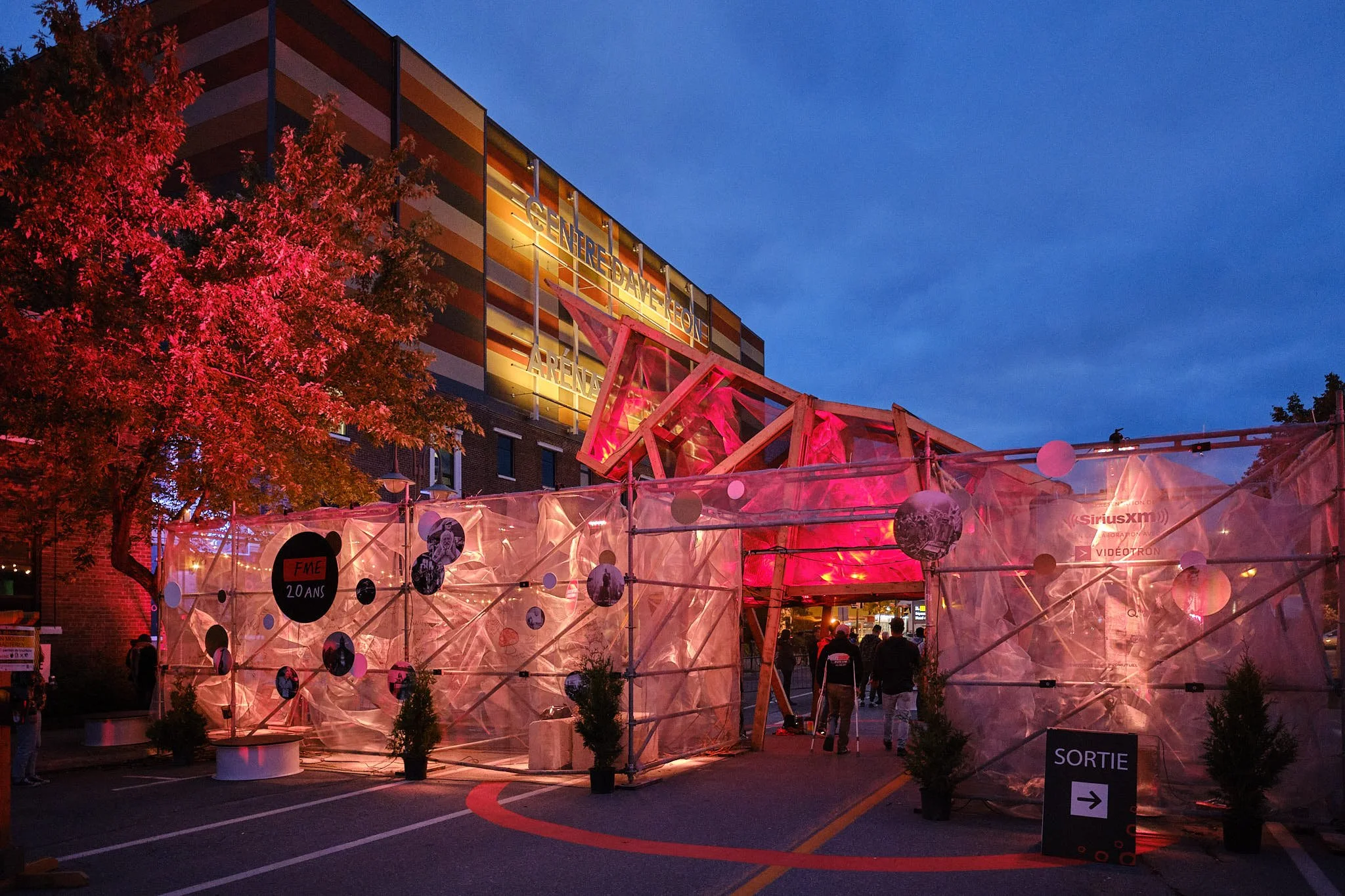 Conception d’une scénographie éphémère pour l’édition 2022 du FME. Inspirée du fameux cheval de troie, l’installation se situait à l’entrée du site. Une grande licorne, créature emblématique de la 20ème édition, s’érigeait devant un mur d’échafaudages infranchissable. L'œuvre, d’apparence sobre, presque austère, renfermait en son cœur un passage festif animé par un éclairage rouge vif et une ambiance sonore envoûtante. Création de plans/prévisualisations, fabrication, montage et démontage.